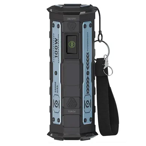 بر روی این پاوربانک یک کابل متصل تایپ سی وجود دارد که می توانید از کابل آن هم برای شارژ کردن دستگاه ها استفاده نمایید. این کابل شارژ را می توانید مانند دستگیره از آن استفاده نمایید.