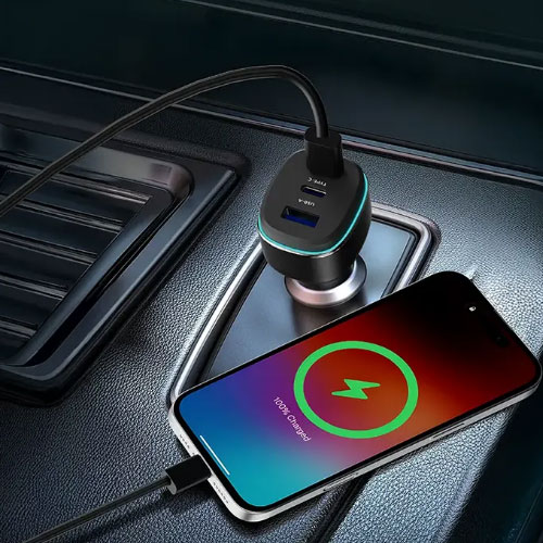 یکی از بزرگترین مزایای این شارژر فندکی، ترکیب هوشمندانه پورتهای آن است. با دو پورت USB-C (تایپ سی) و یک پورت USB-A، شما برای شارژ هر دستگاهی آمادهاید: